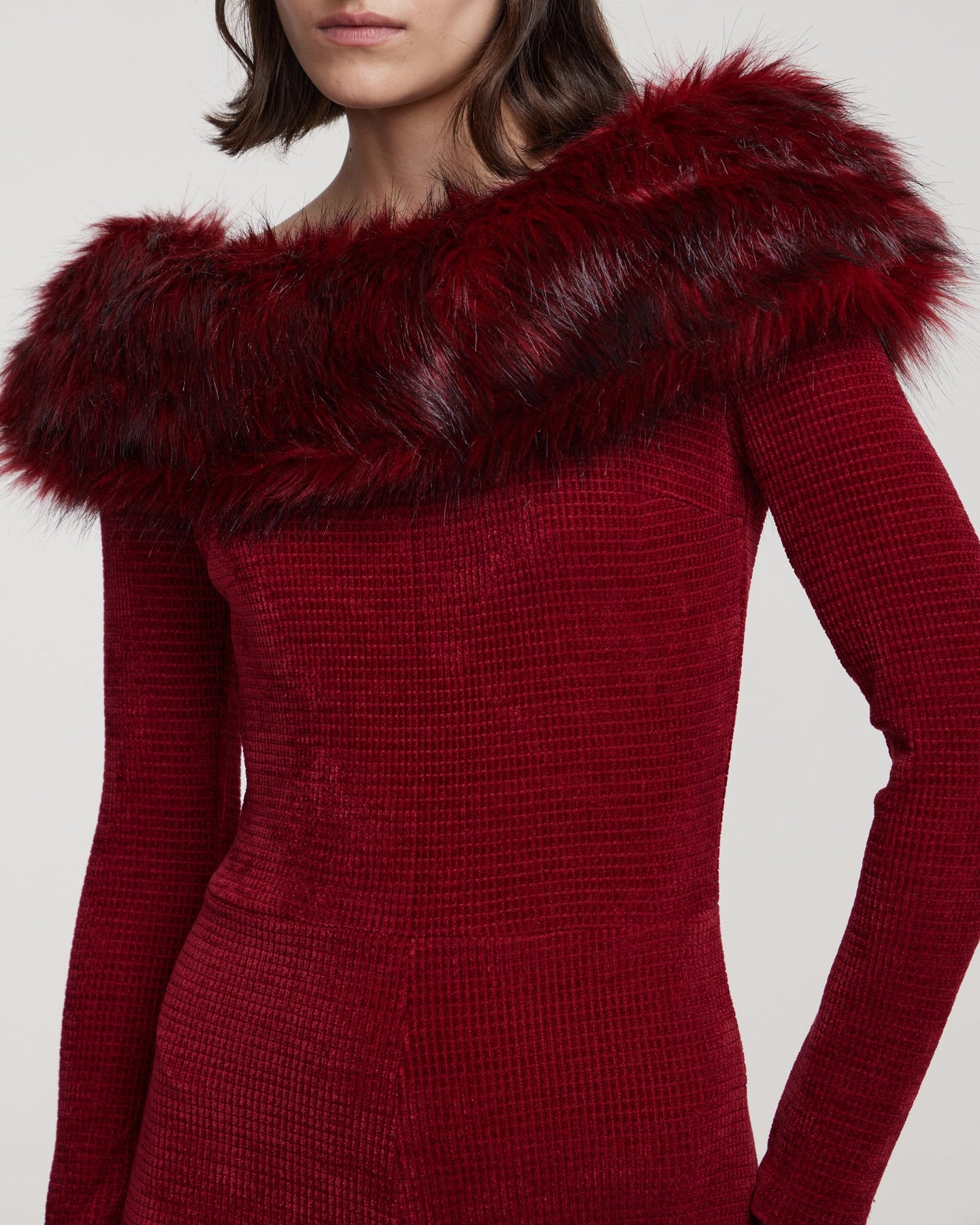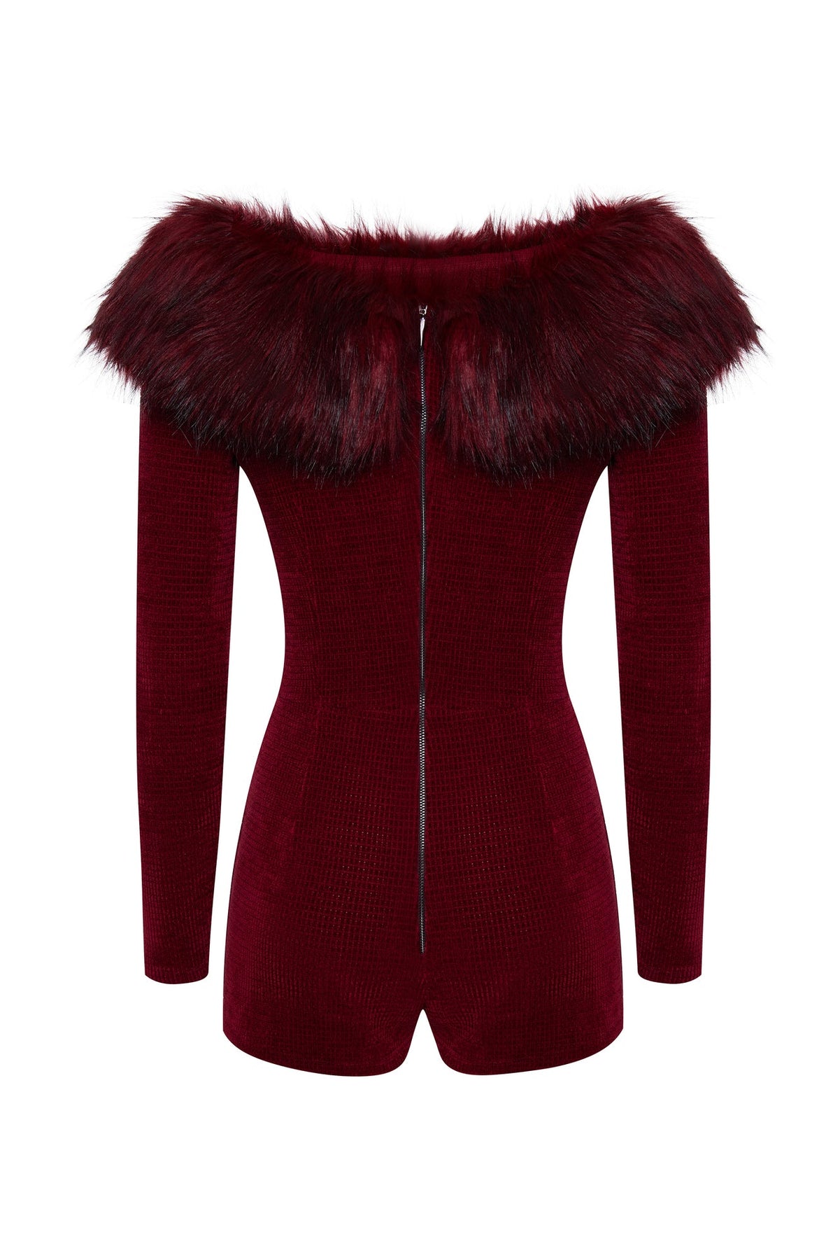 Knit jumpsuit with faux fur trim